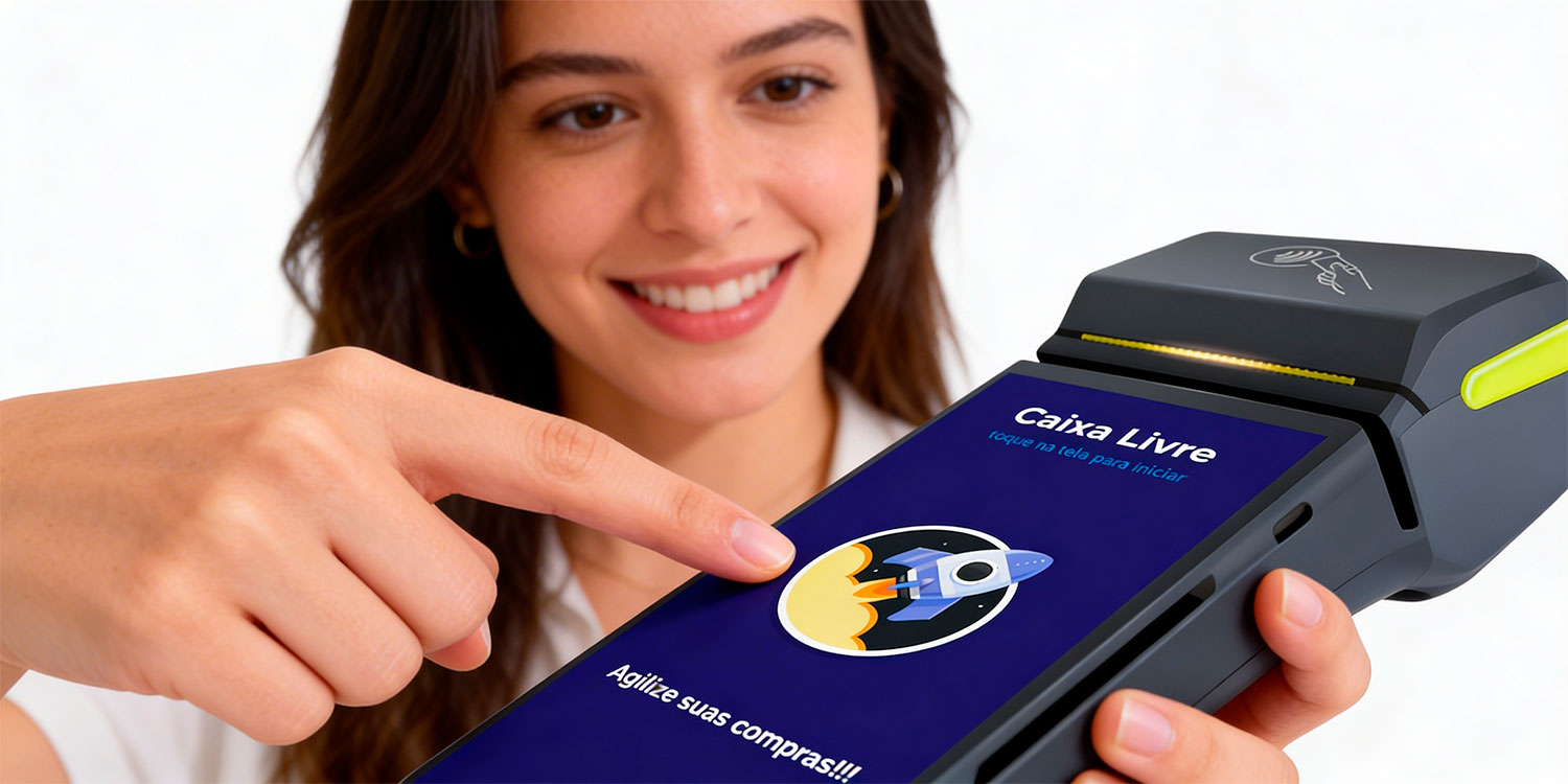 A própria maquininha pode operar em modo de autoatendimento, permitindo que o cliente finalize o pagamento diretamente no equipamento.